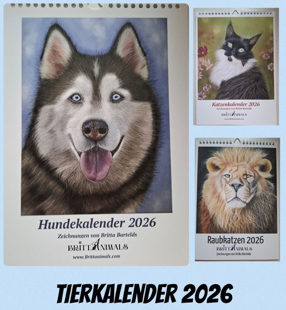 Für 2026 gibt es gleich 3 Kalender: einen Hunde- und Katzenkalender sowie einen Kalender mit Raubkatzen. Inklusive Kalendarium und Feiertagen aus dem Jahr.